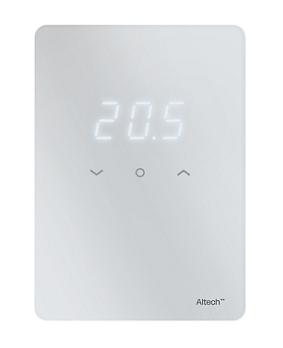 Altech Pro hvid digital rumtermostat til gulvvarme Med denne lille smarte, digitale rumtermostat til ALTECH PRO gulvvarmesystemet kan du nemt og enkelt måle rumtemperaturen i det enkelte rum. Indstillinger af rumtemperaturen foretages via de tre LED berøringstaster og displayvisningen. Ved tilkøb af en Gateway kan systemet styres via app. |