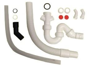 vandlås til Insinkerator Specielt tilpasset til danske forholdVandlås til enkeltkummevask med køkkenkværn, der tager højde for køkkenvaskens overløbsfunktion samt evt. tilslutning til opvaskemaskineU-bøjning er samlet, begge flexrør skal skæres til i længdenPasser til Ø 40/50 mm afløbsrør.