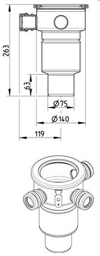UNDERDEL - Med sideindløb - Udløb: Ø75mm, lodret