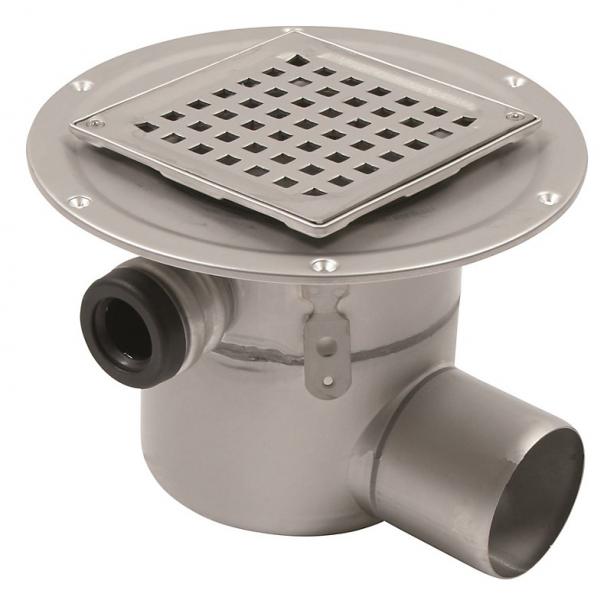 Blücher Afl.Skål Va 75mm Blücher gulvafløb Rustfrit Blücher Square gulvafløb med sideindløb og vandret Ø75 mm afløb. Afløbet er justerbart og egnet til indstøbning i et tungt gulv med flise- og klinkebelægning, fx i badeværelse, bryggers og kælder.