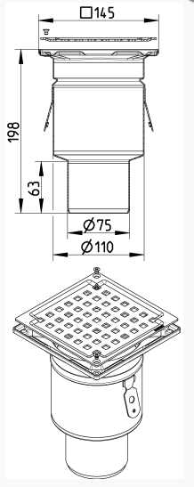 Udløb: Ø75mm, lodret