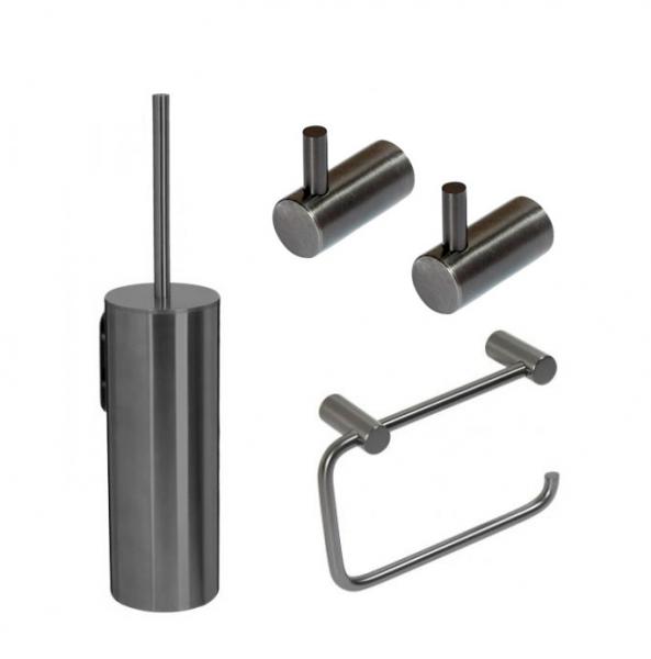 Cassøe tilbehørspakke til bad - Gunmetal Indret badeværelset med tilbehør i flot gunmetal / sort krom. Denne overflade giver badeværelset kant og personlighed, og passer perfekt, hvis du skal have håndvaskarmatur i samme farve. Denne pakke indeholder: