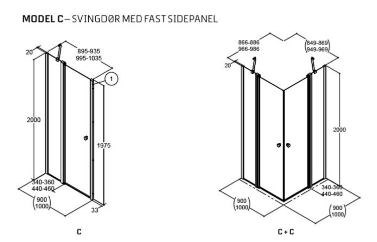 Dansani Match C 90 nichedør m/fast væg - Klar glas/matkrom Dansani Match er en brugervenlig og funktionel bruseløsning, der er smart og praktisk til det lille badeværelse, da dørene kan foldes helt sammen. Med sine firkantede profiler med afrundede hjørner og et ergonomisk knopgreb, får badeværelset et stilrent og elegant design. Glasset har EasyCare behandling på indersiden, der får vandet til at trille af og derved gør rengøringen nemmere. For simpel montering er alle modellerne vendbare og leveres færdigsamlede.