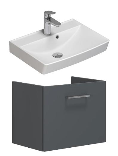 Dansani Mido+ 50 møbelsæt m/Cappella mat vask - Grå mat Møbelsæt med kun 35 cm i dybden(vaskeskab), vask har dybde 40,5 cm - Perfekt til det lille badeværelse Består af
