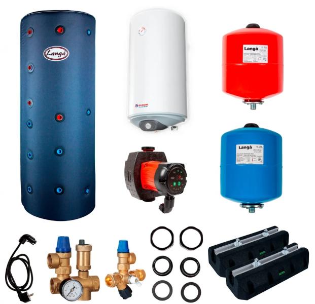 Pakke med alt tilbehør der skal bruges til en komplet installation med brugsvand. Pakken er tilpasset til boliger der har solvarme. Kan dække fra 80 - 160 m² hus og varmt brugsvand til maks. 2 personer. Pakken egner sig til varmepumper på 6 kw, 9,5 kw og 12 kw. EL-vandvarmeren vil blive forvarmet igennem sanitetsspiralen i akkumuleringstanken. Ét temperatursæt, kan indstilles i varmepumpen. Denne pakke indeholder: