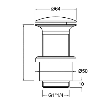 Johansen 1.1/4" push-up bundventil med overløb cylinder krom |