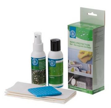 Nano Protection Bad - forsegling til bad, ikke sugende overflader En "anti-snavs-forsegling" til ikke sugende overflader. Det er overflader som håndvask, brusekabine, badekar, bidet, toilet osv. Forseglingen danner en usynlig overflade, hvor vandet vil perle af. Hygiejnen højnes og rengøringen gøres væsentlig nemmere. En påføring holder dit badeværelse rent og frit for kalk i op til 2 år. Sættet rækker til 10-15 m² og kan anvendes på alle glatte oveflader, brusenicher, armaturer, chrom & rustfri stål, glas, håndvaske, badekar osv.