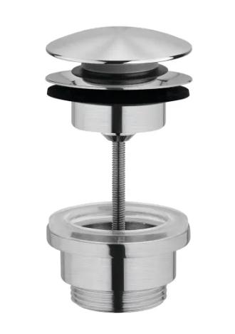 Bundventil med pop up funktion, 1 1/4", 2-delt, med skrue. Passer til vaske med eller uden overløb. kort model, udført i rustfrit stål |