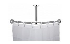 Vinkel forhængsstang, 90x90cm komplet - Krom Vinkel badeforhængsstang komplet sæt Komplet med loftstøtte og ophængsringe