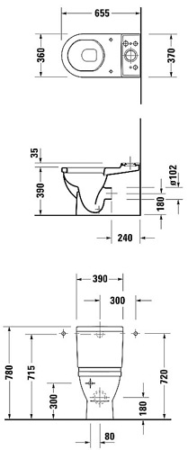 Duravit Starck 3 cisterne til kombination. Med Geberit indmad. Indstillet til 3/6 liter skyl. Tilslutning i venstre bund eller bagpå. Med wondergliss. |