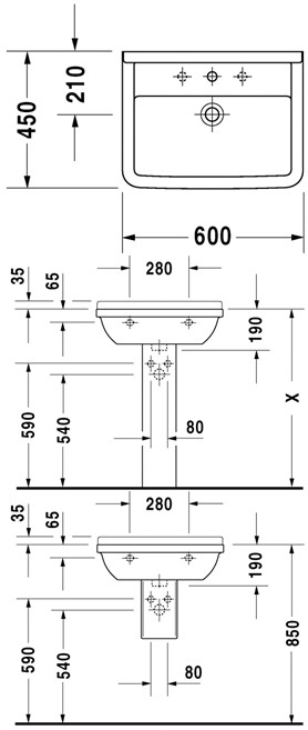 Duravit Starck 3 60 håndvask t/væg Væghængt håndvask fra Duravit med diskret kant i siderne, samt bagkant. Med sin harmoniske form og fine afsætningsplads ved siden af armaturet, vil Duravit Starck 3-håndvasken være et oplagt valg til badeværelset. For matchende halvsøjle, se under relaterede varer.