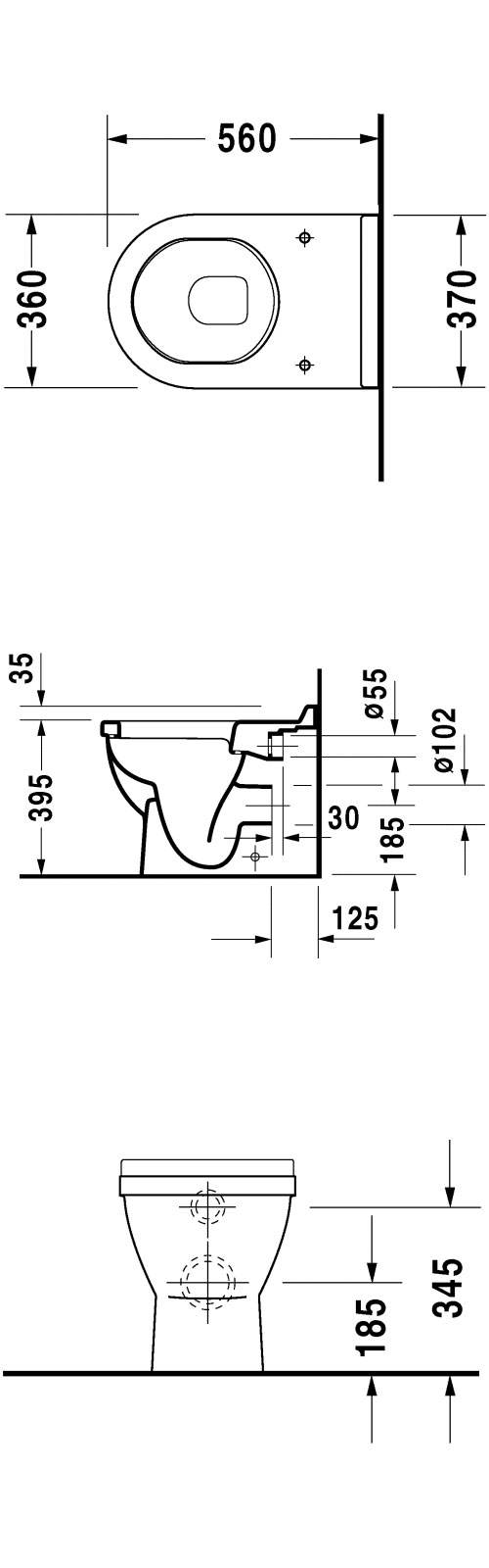 Duravit Starck 3 gulvstående toiletskål Gulvstående til særskilt vandforsyning. Med P-lås. Inklusiv fastgørelse.