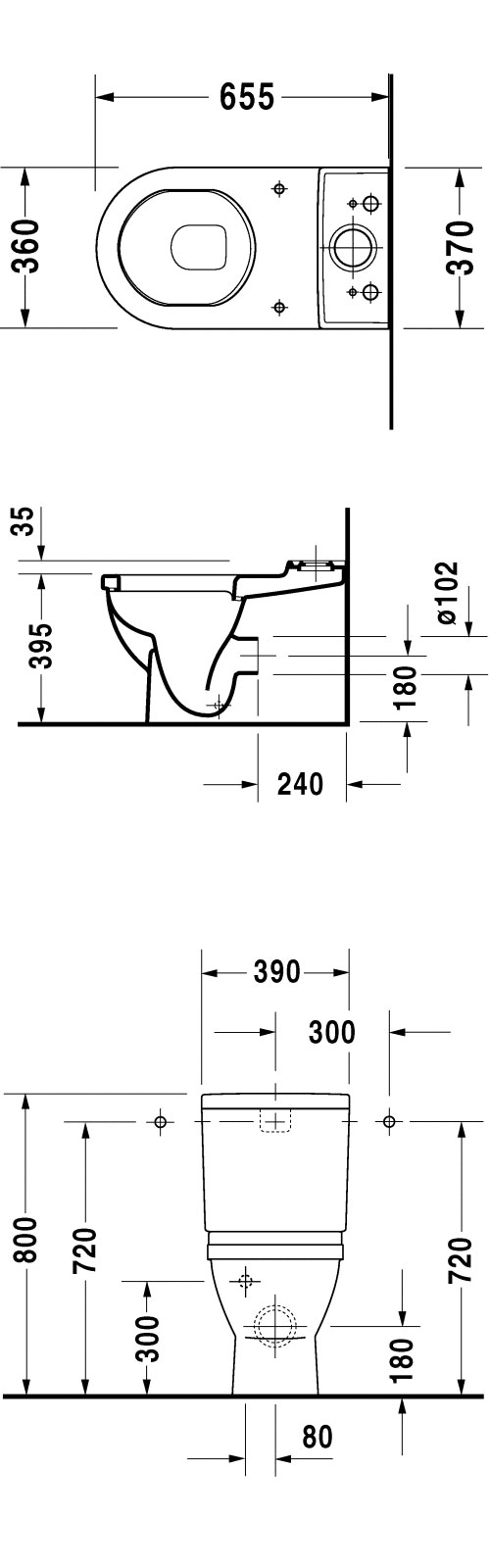 Duravit Starck 3 toilet - Universal lås uden cisterne Duravit Starck 3 toilet 012809 med universal lås. Underdel af kombination. Inkl. fastgørelse. Excl. toiletsæde og cisterne.