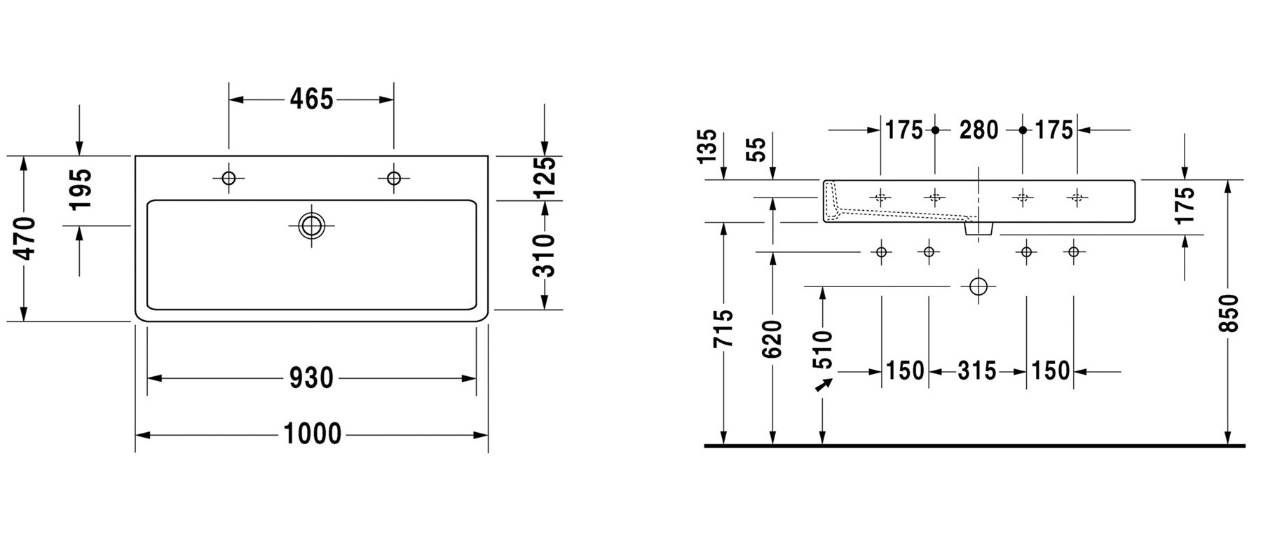 Duravit Vero 100 håndvask t/væg eller møbel - 2 hanehuller Denne flotte aflange håndvask fra Duravit Vero har helt simple linjer og hele to hanehuller til to vandhaner. Dette er det oplagte valg til den store familie, hvor der ofte er travlhed om håndvasken.