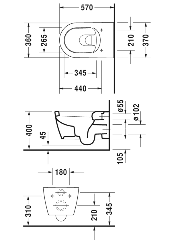 Duravit Me by Starck væghængt toilet m/wondergliss ME by Starck Toilet vægmonteret Nordisk variant, inkl. Durafix, 4,5 L, Design by Philippe Starck Inklusiv Durafix2 for skjult montering Denne model er med wondergliss, et ekstra lag glassur der gør skålen mere |
