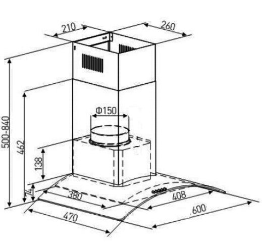 Eico ECH P 60 GX emhætte til vægmontering - Rustfrit stål Eico ECH P 60 GX, Vægmonteret emfang, Med intern motor. Specifikationer: