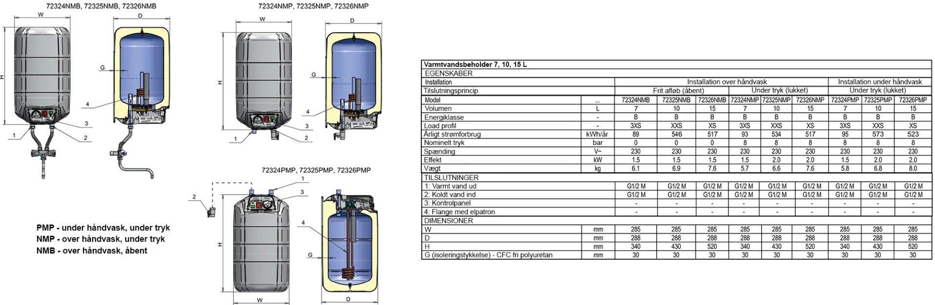 Eldom Varmtvandsbeholder 7 L - Til ophængning over håndvask Effektiv varmtvandsbeholder / vandvarmer til over håndvasken, fra ELDOMINVEST Hurtig og nem installation. En ideel varmtvandsbeholder til rum uden indlagt varmt vand eller til yderligere opvarmning af forvarmet vand, f.eks. fra 30 °C vand fra buffertank, til 65 °C vand til opvasken. Vandvarmeren er isoleret med 30mm miljøvenligt (CPC fri) polyurethanskum. Det sikrer minimalt varmetab og derved energibesparelser. Beholderen er emaljeret og rustbeskyttet for at sikre lang holdbarhed. Vi anbefaler tilkøb af sikkerhedsamatur - 8 bar til alle varmtvandsbeholdere.