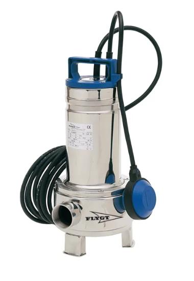 Flygt pumpe DXM 35-5 med 1.1/2" muffe og 10 m kabel, 230 V Flygt DXM dræn- og regnvandspumpe med løs niveauvippe, kan udpumpe grundvand, gråt spildevand, samt dræne vejtunneller osv. med partikler op til 35 mm.