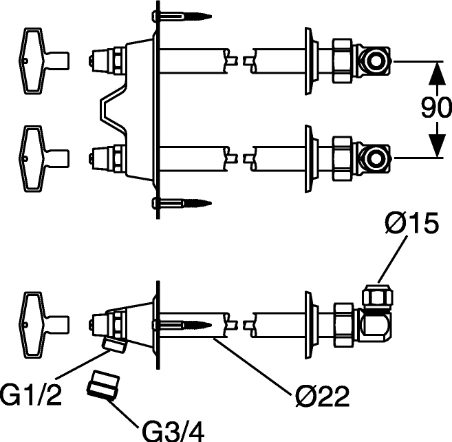 FM Mattsson udendørsvandhane/posteventil model 4282-0050. Med løse nøgler. Til vægtykkelse max. 400 mm. Til koldt og varmt vand. Selvtømmende. |
