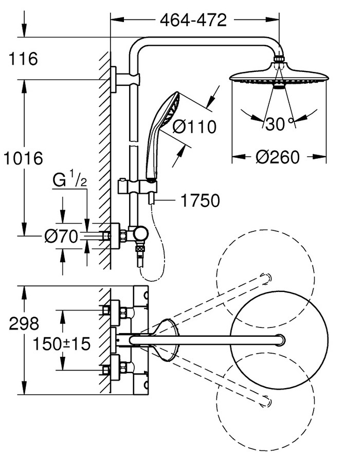 Grohe Euphoria 260 brusesystem Et behageligt brusesystem med termostat, der er bygget til at holde – præcisionsfremstillet af GROHE! Det imponerende GROHE Euphoria 260 brusesystem med termostat tilfører øjeblikkeligt designerstil og brusenydelse til ethvert moderne badeværelse. Systemet er spækket med GROHEs avancerede teknologi og ydeevne i topklasse er dermed garanteret. Indstil din foretrukne temperatur med GROHE TurboStat, og vandet vil holde denne temperatur konstant, selv når vandtrykket svinger. Den brugervenlige GROHE SafeStop funktion begrænser vandtemperaturen til maksimalt 38 ˚C, hvilket er optimalt for børns sikkerhed i badeværelset, men indstillingen kan øges yderligere til voksne. AquaDimmer gør det muligt for dig ubesværet at styre vandmængden, samtidig med at den også dirigerer vandgennemstrømningen mellem hoved- og håndbruseren, der har en TwistFree slange på 1750 mm. GROHE DreamSpray sikrer, at vandgennemstrømningen fra alle dyser er ens. Den 260 mm store hovedbruser har tre markante strålezoner. Strålemønsteret Jet er kraftigt og fokuseret; perfekt til at skylle shampoo ud med og til at give en opkvikkende hoved- eller nakkemassage. Strålemønsteret SmartRain er bredere og velegnet til en energigivende, men samtidig afslappende oplevelse, og strålemønsteret Rain benytter alle dyserne i den store stråleflade til at dække hele kroppen og give et dejligt beroligende brusebad. Det eneste, du skal gøre for at vælge det ønskede strålemønster, er at dreje på knappen i midten af strålehovedet. Og den 450 mm lange brusearm kan endda dreje hele 180°, hvilket giver endnu større fleksibilitet. 110-mm-håndbruseren har også tre strålemønstre: det bløde mønster Rain, det vandbesparende mønster SmartRain og det opkvikkende mønster Massage. De smarte SpeedClean silikonedyser betyder, at bruserne er nemme at holde fri for snavs og kalkaflejringer! Den ridsefaste GROHE StarLight krombelægning i flere lag har en glans, der holder i årevis, og den indvendige vandføring Inner WaterGuide forhindrer, at bruserens overflade bliver varm. GROHE Euphoria 260 brusesystemet – bruseperfektion og -komfort! |
