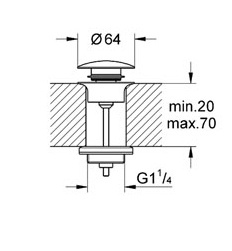 Grohe push-open bundventil 1 1/4 - Krom OBS: Varen er på lager - både til afhentning og dag-til-dag levering. Grohe Push-open 1 1/4" bundventil i kromfinish. Bundventilen er 2-delt, hvilket betyder at den kan bruges til vaske både med og uden overløb.