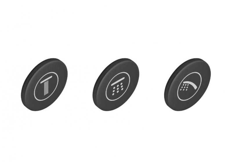 Grohe SmartControl trykknapper - Mat granit Ønsker du at skifte trykknapperne på din SmartControl fra hvid til grå, giver dette sæt knapper dig muligheden for dette. Overfladen er mat grå, matteret granit, med lyse symboler, der f.eks. vil se flot ud på en Grohe SmartControl i hard graphite. Passer til Euphoria SmartControl brusesystemer. |