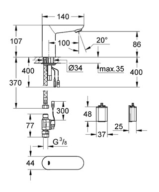 Grohe Euroeco Cosmopolitan E berøringsfri vandhane - En slags vand Uden temperaturregulering. Kan bruges til koldt eller forblandet vand. Med et berøringsfrit armatur forbruges der ikke mere vand, end nødvendigt. Inden i armaturet findes desuden en vandbesparingsfunktion, som begrænser gennemstrømningen af vand, så vandforbruget også begrænses her. Det rigtig smarte ved disse to funktioner, er at du får fuld bekvemmelighed, selvom vandmængden begrænses. Denne Grohe Euroeco Cosmopolitan bærer tydeligt præg af Grohe's moderne design og vil altid være et stilrent element. Det berøringsfri armatur har desuden fået Grohe's Long-Life Shine-krombelægning, som sørger for en holdbar og slidstærk overflade, som vil holde sig flot i mange år. Grohe Euroeco Cosmopolitan E berøringsfri vandhane er et trofast armatur, som er oplagt til energibevidst forbrug. Specifikationer: