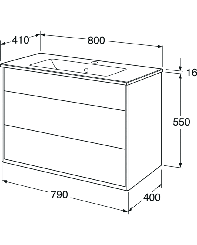 Graphic har lidt slankere mål end de fleste andre badeværelsesmøbler. Designet er baseret på grafiske former og mål, der gentager sig.