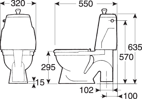 Gustavsberg børnetoilet model 305C med åben S-lås. Toilet med ekstra lav siddehøjde. Beregnet til børneafdelinger på hospitaler, lægehuse, børneinstitutioner og lignende. Tekniske specifikationer: