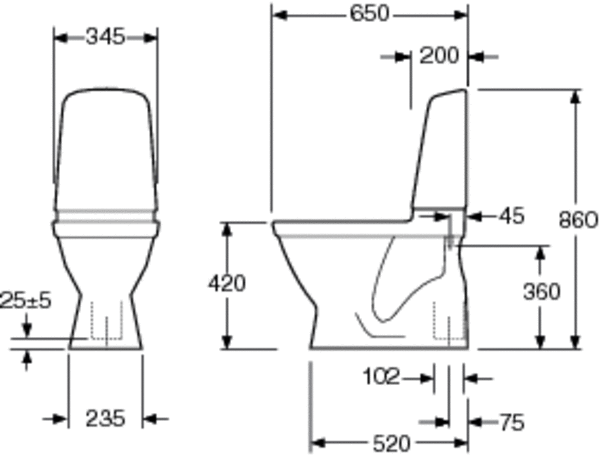 Gustavsberg Nautic toilet med skjult S-lås 5500L med 2/4 liters skyl Toilettet, der skal gulvmonteres med skruer, er fremstillet i hygiejnisk, holdbart og tætsintret sanitetsporcelæn. Med en heldækkende kondensfri cisterne og en flad skylleknap i simpelt design er toilettet endnu mere hygiejnisk. Tekniske specifikationer:
