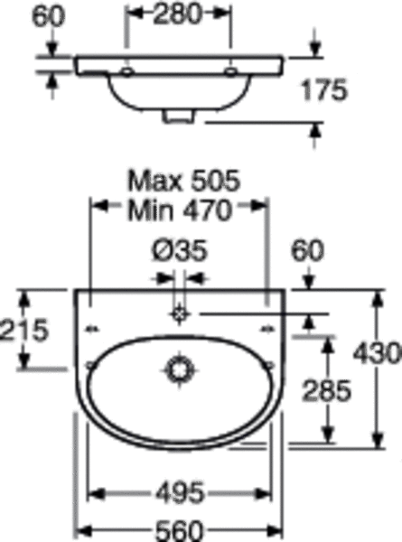 Gustavsberg Nautic 5556 56 håndvask t/væg - 1 hanehul Ellipseformet håndvask til montering på væg fra Gustavsberg. Håndvasken er flot, pladsbesparende og funktionelle. Du har mulighed for at kombinere denne håndvask med en halvsøjle (se relaterede produkter). Specifikationer: