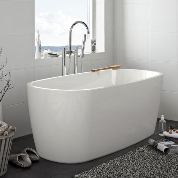 Fritstående designbadekar med bløde, runde former. I ekstra stabil, farvebestandig sanitetsakryl. Overfladen har ingen samlinger, hvilket gør karret nemt at rengøre. Justerbare fødder. Badedybde 460 mm. Mål: 1570X750X600 mm.