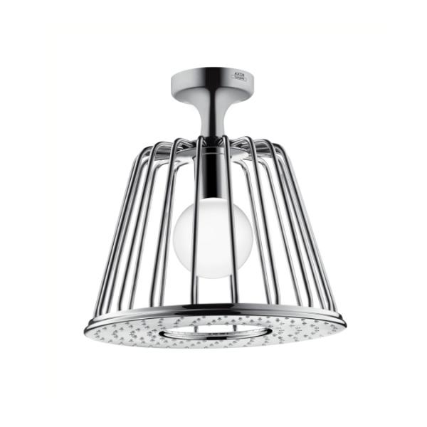 Med den nye Axor LampShower fusionerer designeren Oki Sato fra Nendo på en magisk måde lys og vand. "Det er hverken en lampe eller bruse, det er en hybrid," siger Sato. Det visuelle designs lethed og kombinationen af lys og vand, giver bruseren en større sensuel dimension. Også den brede stråleskive som indrammer det varme lys, bidrager til denne effekt.