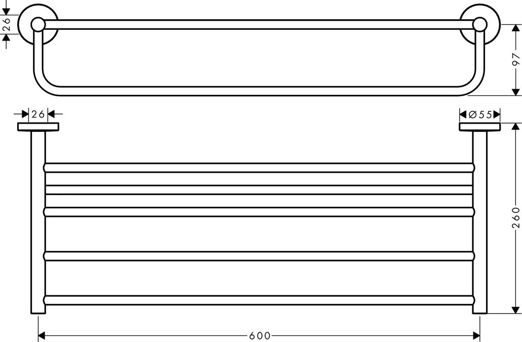 Hansgrohe Logis Universal håndklædehylde - Krom Med Logis Universal tilbyder hansgrohe sin hidtil største tilbehørsserie til badeværelset. I det brede produktprogram finder du en lang række tilbehørsdele, der alle er enkle i designet og passer særligt godt ind på det moderne badeværelse. Brug håndklædehylden til opbevaring af håndklæder eller hæng op til 5 håndklæder til tørre. Monteres enkelt på væggen.