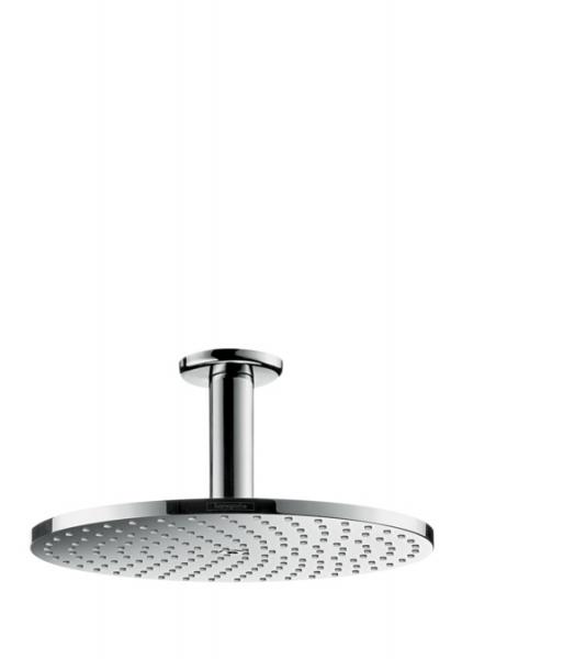 Her strømmer PowderRain fra en 24 cm stor stråleskive, der monteres i loftet med den medfølgende tilslutning. Bruseren kan vinkeljusteres. QuickClean antikalk-funktionen sørger for, at du let kan gnide kalkrester væk fra dyserne med en finger. Med forkromet overflade.