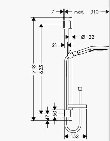 På den 65 cm lange bruserstang er det let at indstille bruseren i den ønskede højde og vinkel. Leveres med 1,6 m glat Isiflex-slange og praktisk, rund sæbeskål.
