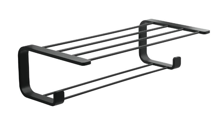 Hefe Outline håndklædehylde og holder - Mat sort Leder du efter en moderne og funktionel løsning til opbevaring af dine håndklæder? Så er Outline håndklædehylde - en kombination af stil og praktisk design. Funktioner: Dobbelt Opbevaring: Med to rummelige hylder giver Outline dig den plads, du behøver for nemt at arrangere og tilgå dine håndklæder. Sofistikeret Sort Design: Dens dybe sorte finish tilføjer et strejf af elegance til ethvert badeværelse, og komplementerer en bred vifte af indretningsstile. Moderne & Minimalistisk: Outline's enkle, men markante design gør den til en ideel tilføjelse for dem, der ønsker en minimalistisk æstetik. Stabil & Holdbar: Fremstillet med omtanke for at sikre, at dine håndklæder forbliver sikkert på plads. Den robuste konstruktion sikrer en langvarig anvendelse. Nem Installation: Outline håndklædehylde er designet med brugervenlighed i tankerne. Med det medfølgende monteringssæt kan den nemt fastgøres til væggen, så du hurtigt kan begynde at organisere dit badeværelse. Gør dit badeværelse både stilfuldt og funktionelt med Outline håndklædehylde. Uanset om du har mange gæster, eller blot ønsker et organiseret sted til dine håndklæder, vil Outline være en fremragende tilføjelse til dit hjem.