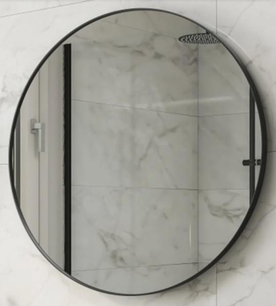 Enkelt og elegant spejl med sort ramme (plast) til det moderne badeværelse. Kan også være flot i andre rum