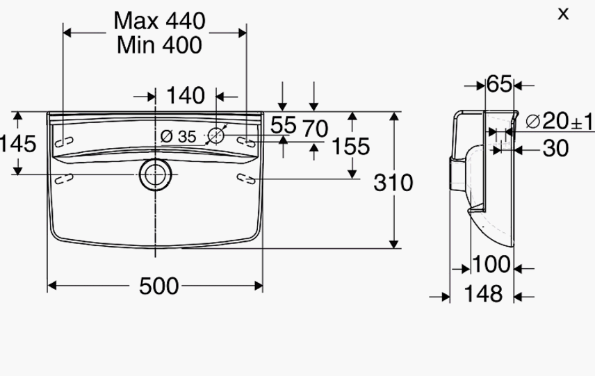 Ifö Spira 50 håndvask t/væg - 1 hanehul til højre - Ifö Clean Håndvaske med afsætningsplads på bagerste del af vasken. Hanehul til højre eller venstre. Fremstilles også uden overløbshul og hanehul, hvilket giver enklere rengøring. Monteres med hægte- eller standard bæringer. Vasken indgår i komplet møbelpakke Ifö Spira 500. Håndvasken er behandlet med Ifös rengøringsvenlige glasur Ifö Clean og godkendt i henhold til Nordic Quality. Design Knud Holscher. Specifikationer: