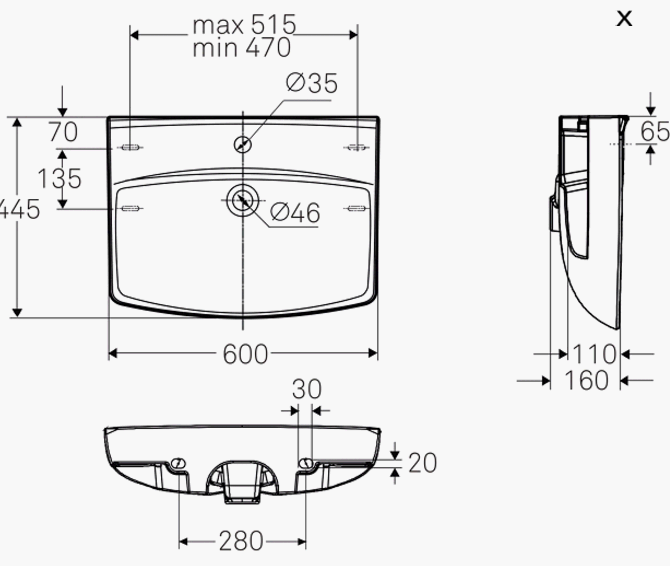 Ifö Spira 60 håndvask t/væg - 1 hanehul - Ifö Clean Håndvask med afsætningsplads på bagerste del af vasken. Fremstilles også uden overløbshul og hanehul, hvilket giver enklere rengøring. Monteres med bolte eller bæringer. Håndvasken er behandlet med Ifös rengøringsvenlige glasur Ifö Clean og godkendt i henhold til Nordic Quality. Design Knud Holscher. Specifikationer: