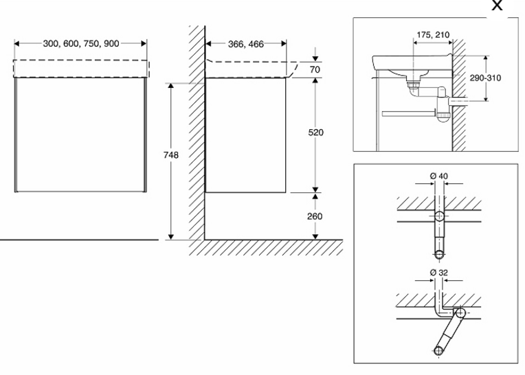 Ifö Spira møbelpakke 90c m/skuffer - Hvid Komplet møbelpakke med smallere underskab