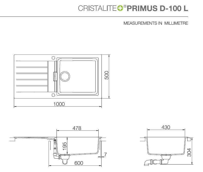 Lækker køkkenvask med flot overløbsdetalje. Mål: 1000x500 mm Kumme: 478x430x195 mm Udskæringsmål: 980x480 mm R10 Vasken er forboret med to huller og er dermed vendbar. |