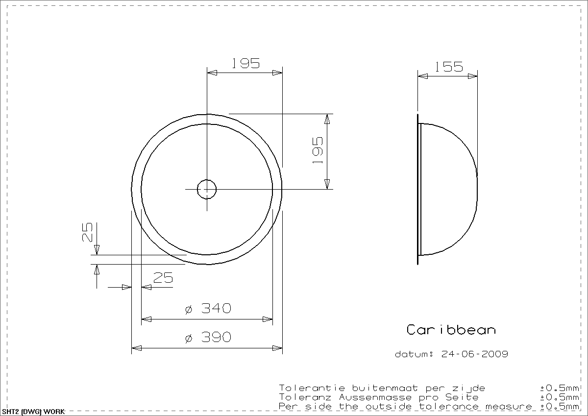 Lavabo Carribean Ø34 håndvask t/nedfældning, planlimning eller underlimning - Med overløb