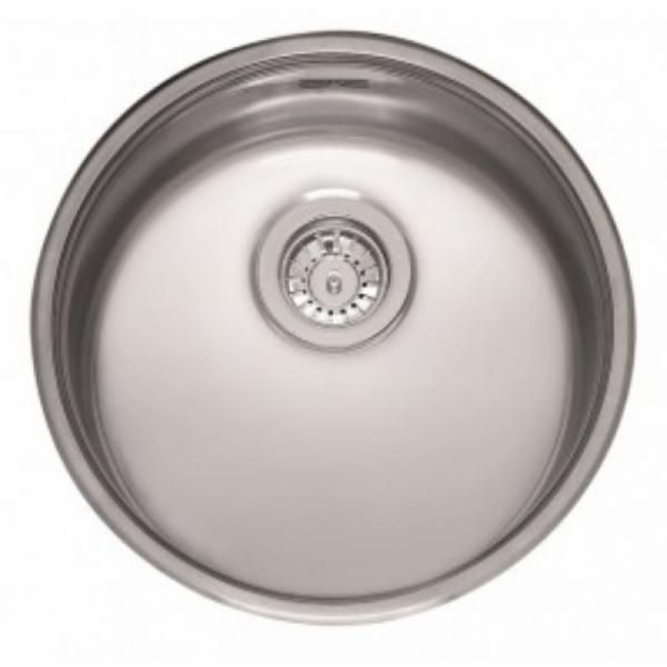 Rustfri stålvask uden hanehul. Vasken kan monteres på forskellige måder: almindelig nedfældning, underlimning og planlimning.