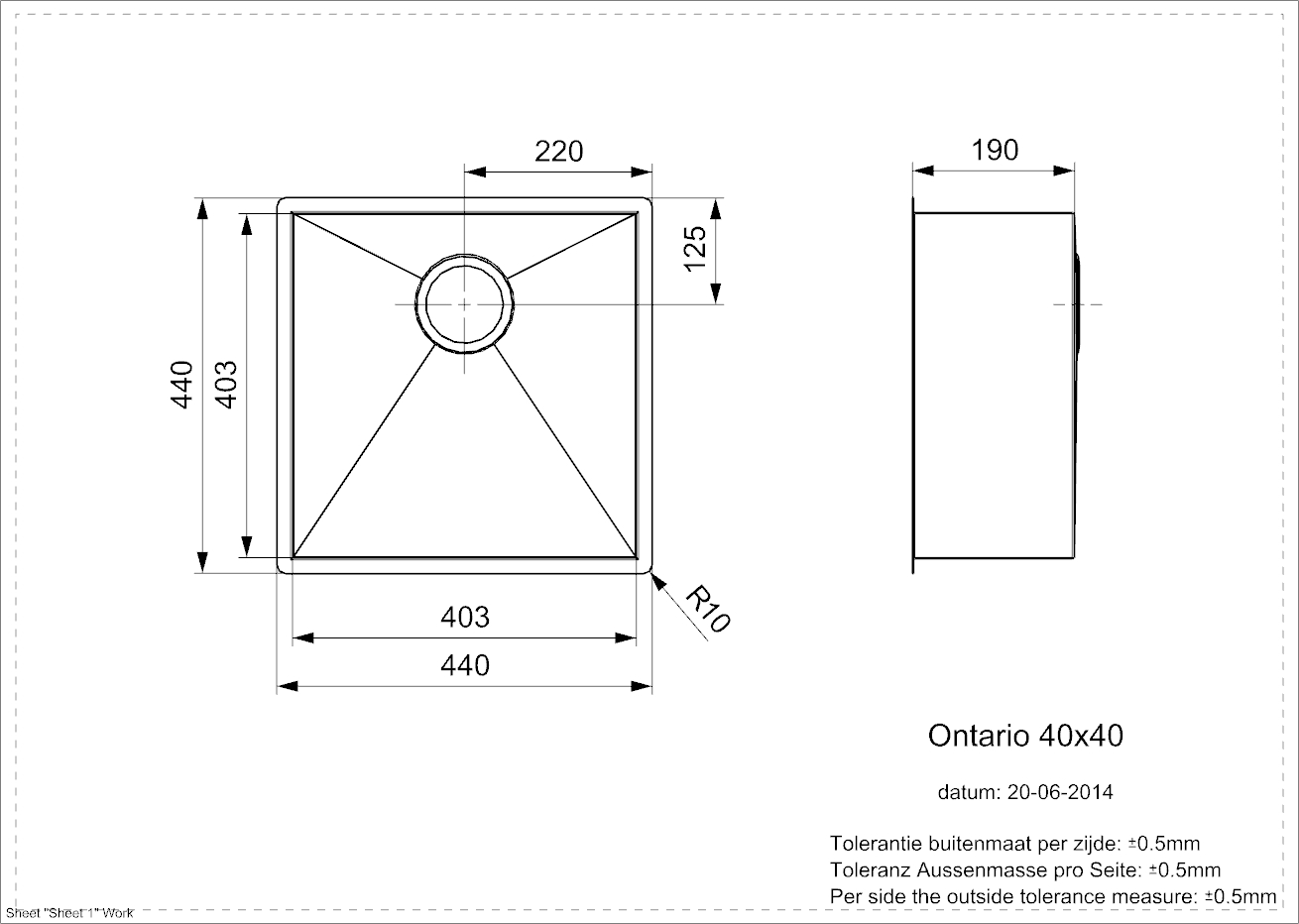 Med en ståltykkelse på 1,0 mm. er vasken meget stabil. Denne stabilitet og de medfølgende monteringsclips betyder, at vasken kan monteres på forskellige måder: almindelig nedfældning, underlimning og planlimning.