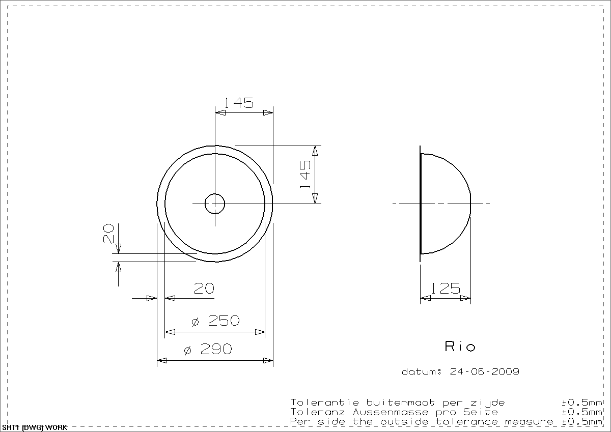 Lavabo Rio Ø25 håndvask t/nedfældning, planlimning eller underlimning - Med overløb