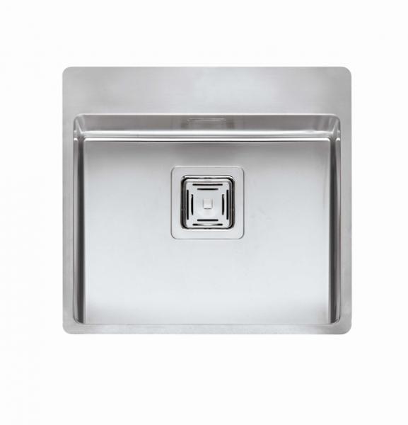Rustfri stålvask, med hanehul, i moderne firkantet design.