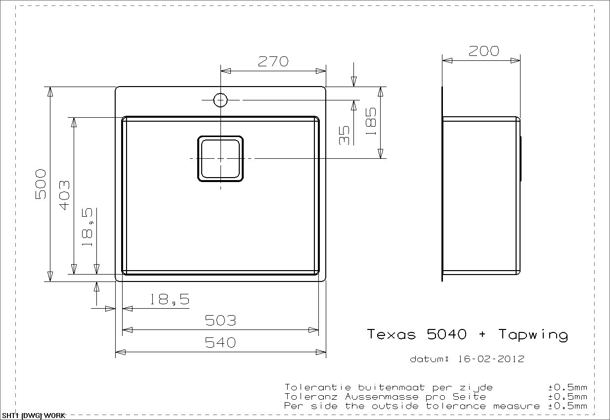 De indvendige runde hjørner (R: 10 mm.) følger vaskens yderkant, hvilket giver et harmonisk design, ligeledes er de indvendige runde hjørner rengøringsvenlige.