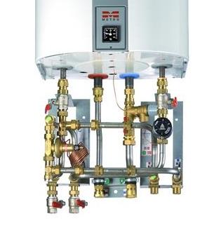 METRO system 1 type 6371 er en væghængt fjernvarmeunit til beholder samt direkte fjernvarme til rumvarme. Styring af brugsvand sker ved hjælp af indbygget termostatisk reguleringsventil og trykdifferensregulator. Styring af rumopvarmningen sker ved hjælp trykdifferensregulator. Unitten skal monteres under en beholder, som købes separat. Ex. model 110 (type 6440) eller model 160 (type 6050) beholder. Ved montering under en model 60 beholder (type6220) skal der tilkøbes koblingssæt. |