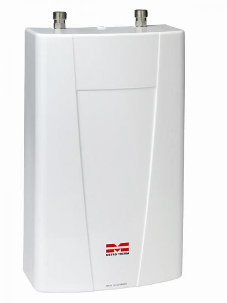 Tilsluttes 3x400volt og yder 11 kW. Sikres med 3x16A sikringer. Velegnet til håndvask med eksisterende trykarmatur. Vandvarmeren skal monteres med rør op. |